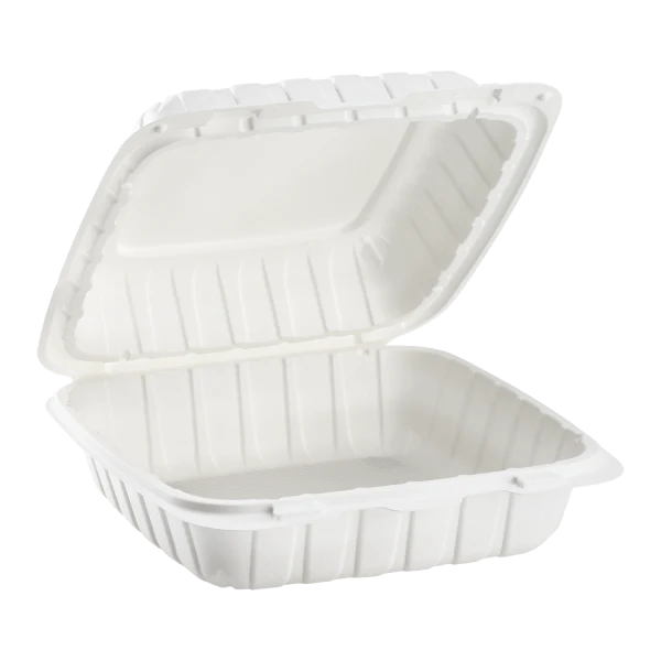 MFPP Hinged Containers with Vented Holes Vented holes on hinged take-out food containers are primarily for allowing excess steam and moisture to escape, which prevents condensation from forming inside the container and making certain foods soggy. This helps to preserve the food's original texture and quality, especially for items that are meant to be crispy Best for: Crispy/fried foods and grill. Key Benefit: Prevents sogginess Introducing the PC MFPP Hinged Container 6X6 1 Compartment (300ct), a game-changing solution for sustainable and innovative food storage. Made from a cutting-edge hybrid material, these Earth-Friendly Hinged Lid To-Go Containers represent a significant breakthrough in minimizing plastic waste. Compared to traditional alternatives, they utilize an impressive 60% less plastic polymer. These containers are not only environmentally friendly but also practical. They are designed to be microwave-safe, allowing for easy reheating of your meals. With our patented closure system, leaks and spills are a thing of the past, making these containers perfect for transporting liquid-based items. Additionally, their stackable design optimizes storage space, making them suitable for both commercial and residential use. The textured walls of these containers offer a comfortable grip, while the slip-resistant design ensures a firm hold even when your hands are wet or greasy. Say goodbye to flimsy and unreliable food storage solutions, and embrace the future of eco-friendly packaging. By choosing our PC MFPP Hinged Container 6X6 1 Compartment, you are not only making a smart choice for your needs but also making a positive impact on the environment. Join us in creating a sustainable future today.