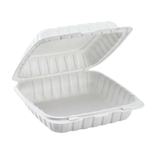 Introducing our PC MFPP Hinged Container, a revolutionary and earth-friendly solution for your to-go needs. Made from a cutting-edge hybrid material, these containers are designed to minimize plastic waste by using 60% less plastic polymer compared to traditional alternatives. Our commitment to sustainability and innovation shines through in this product. Not only are these containers eco-friendly, but they are also practical. They come with a patented closure system that guarantees a secure seal, preventing any leaks or spills during transport. Whether you need to carry liquid-based items or other contents, these containers are a reliable choice. In addition, these containers are microwave-safe, allowing you to heat up your food without transferring it to a different dish. With their stackable design, these containers optimize storage space in both commercial and residential settings. You can keep your kitchen organized and efficient. The textured walls of these containers provide a comfortable grip, while the slip-resistant design ensures a firm hold, even with wet or greasy hands. They are incredibly user-friendly and convenient. Be part of the eco-friendly packaging revolution and make a positive impact on the environment with our PC MFPP Hinged Container. Embrace the future of sustainable packaging and enjoy the benefits of this innovative product today.