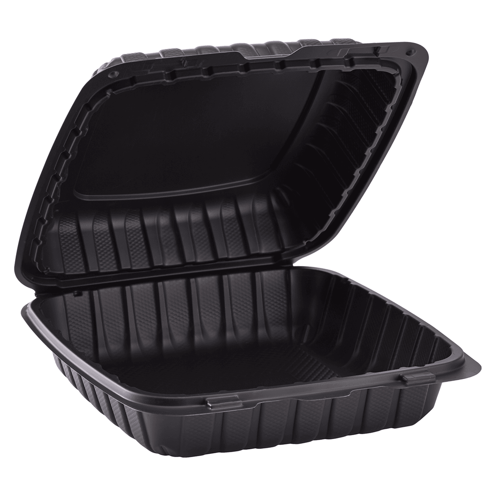 PC - 9"x9"x3" 1-Compartment Heavy Weight MFPP Black Hinged Container - 150ct (Shaka