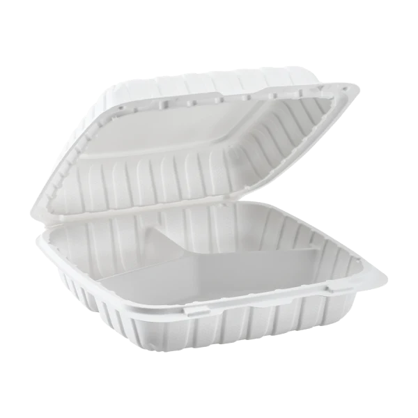 PC - 9"x9"x3" 3-Comparment Heavy Weight MFPP White Hinged Container - 150ct (Shaka)